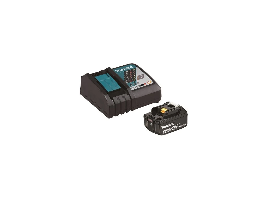 Součástí sady je rychlonabíječka DC18RC a akumulátor BL1830B.