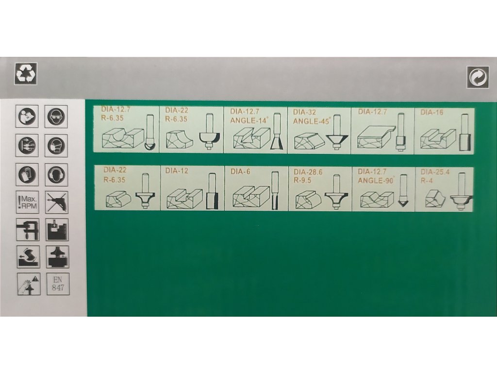 - 12dílná sada fréz s tvrdokovem (HM)