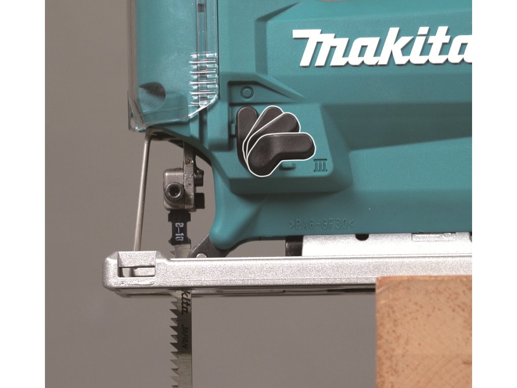 Akumulátor Li-ion 18V LXT Počet zdvihů 0-2.900 min-1 Výška zdvihu 18 mm Předkyv 4 stupně Řezný výkon (dřevo) 65 mm Řezný výkon (ocel) 10 mm Hmotnost 1,6 / 2,2 kg Rozměry (DxŠxV) 208 x 81 x 196 mm
